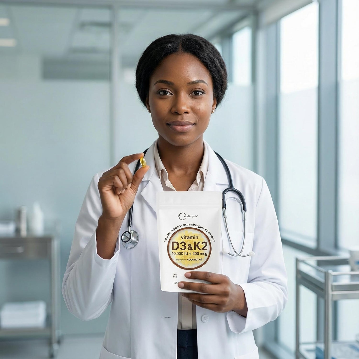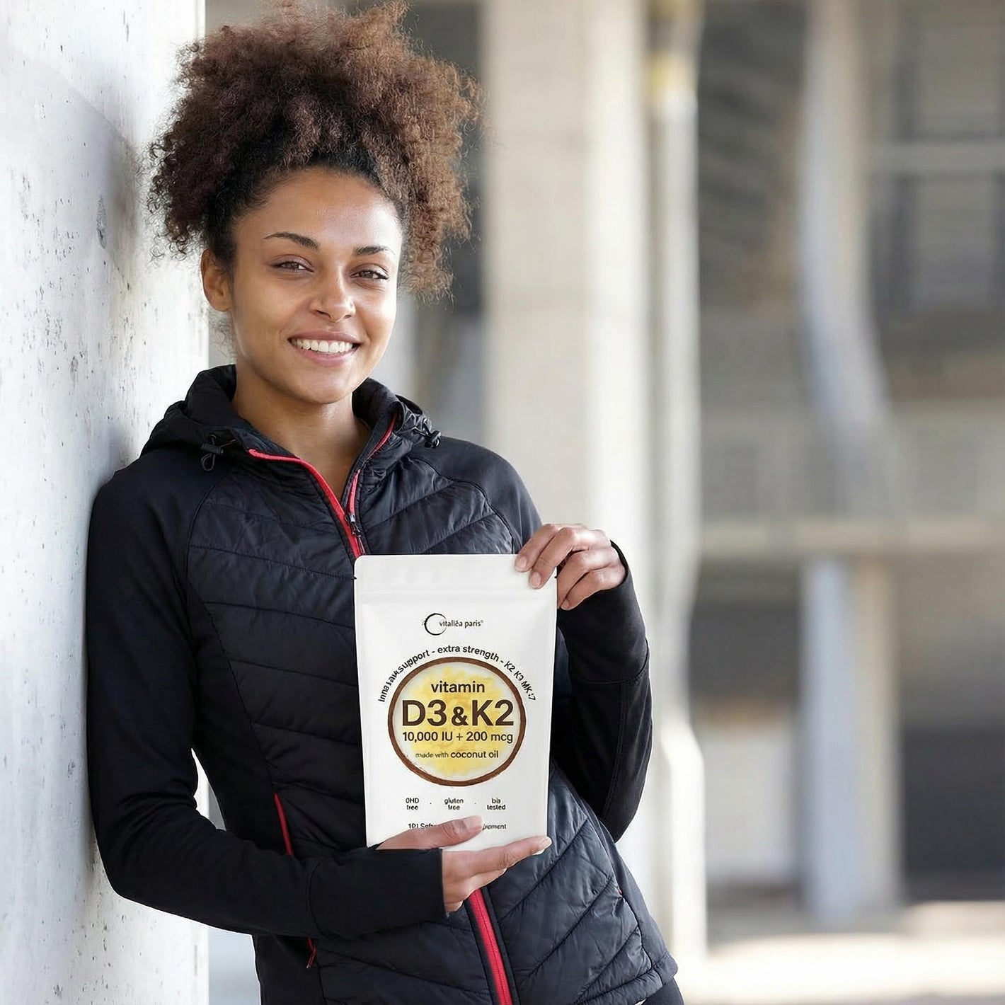 La vitamine D3 favorise l’absorption du calcium, tandis que la vitamine K2 aide à l’utiliser correctement, en le dirigeant vers les os plutôt que vers les artères.